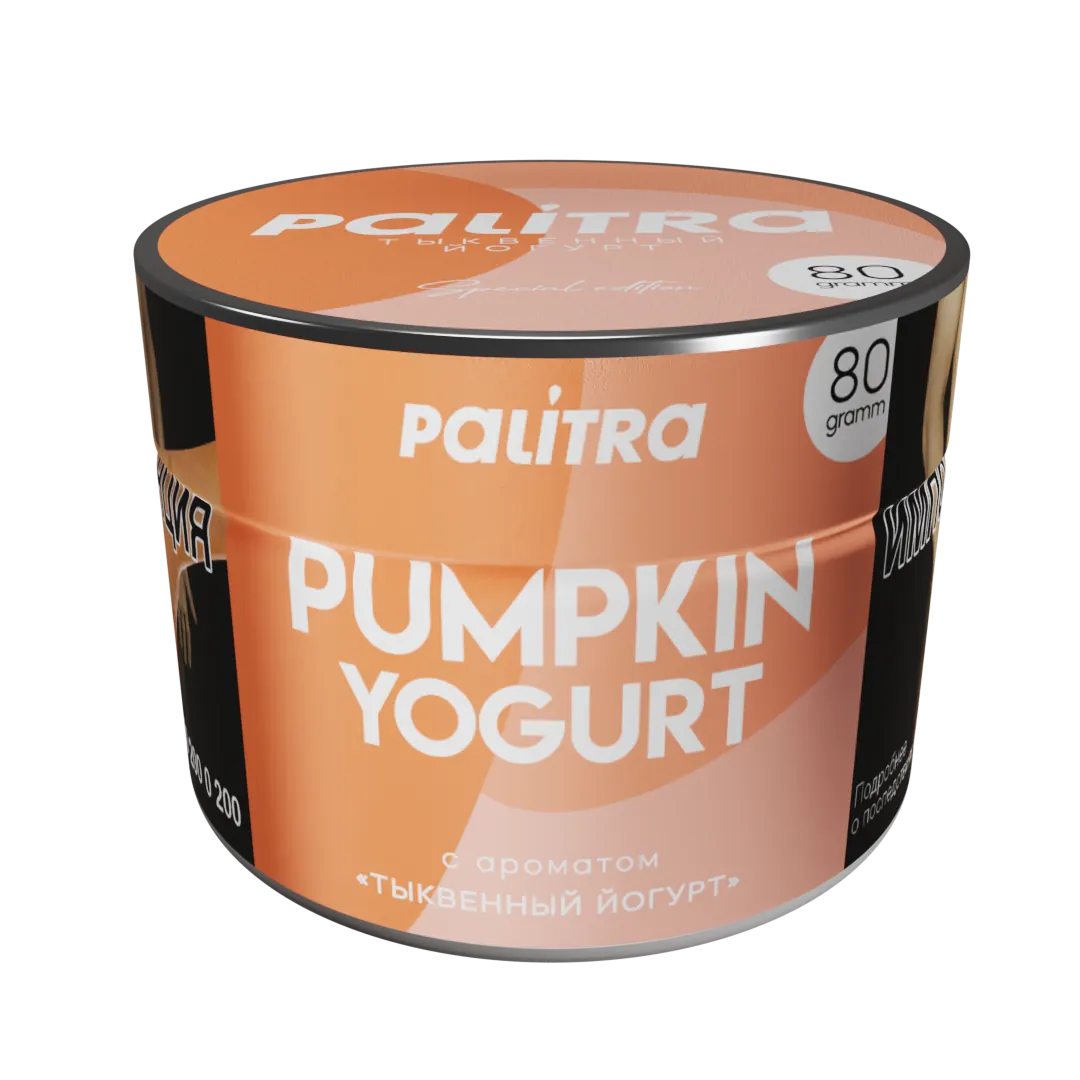Табак Palitra Pumpkin Yogurt (Тыквенный йогурт) 80 г — это смесь для кальяна с гармоничным сочетанием мягкой текстуры и насыщенного вкуса спелой тыквы с деликатными нотками йогурта. Продукт относится к линейке Special Edition и производится в России.