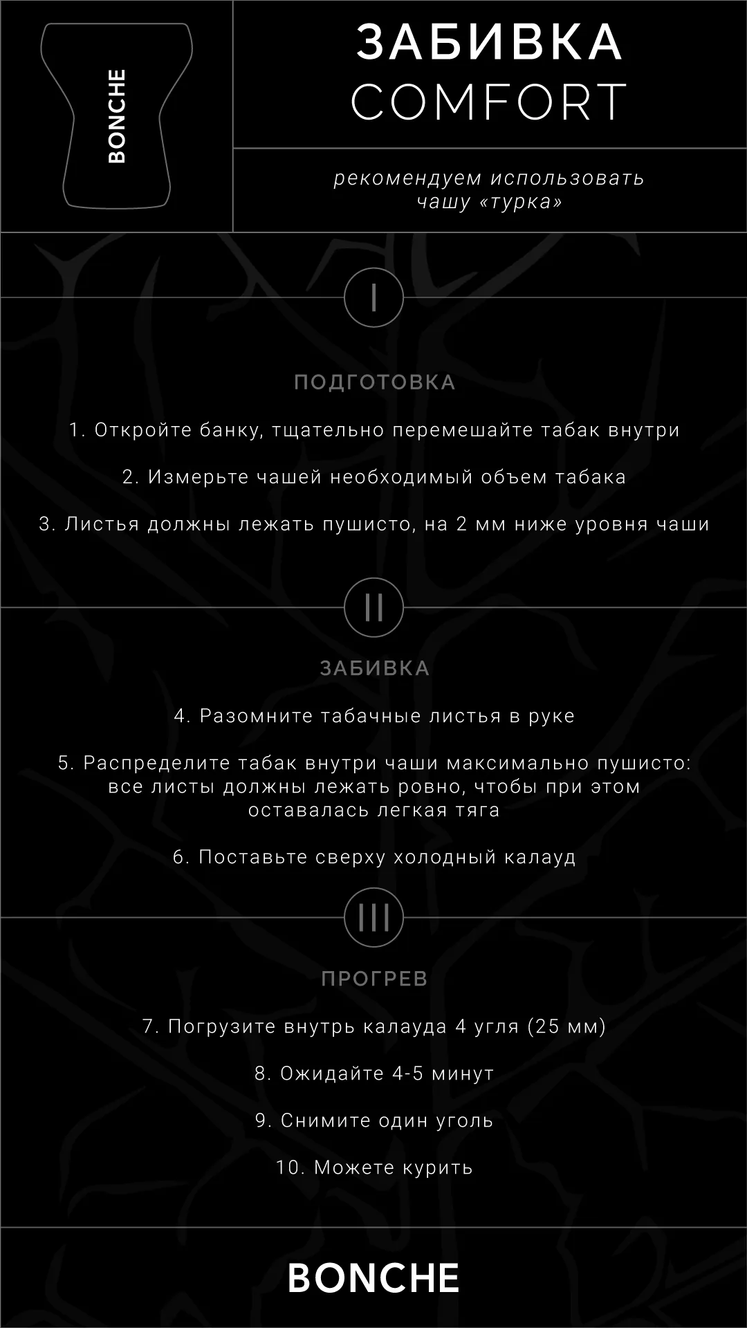 Табак Bonche отличается оптимальной нарезкой и пропиткой, что обеспечивает равномерное прогревание и насыщенный вкус на протяжении всего курения. Это гарантирует вам длительное и приятное курение без горечи и неприятных сюрпризов.